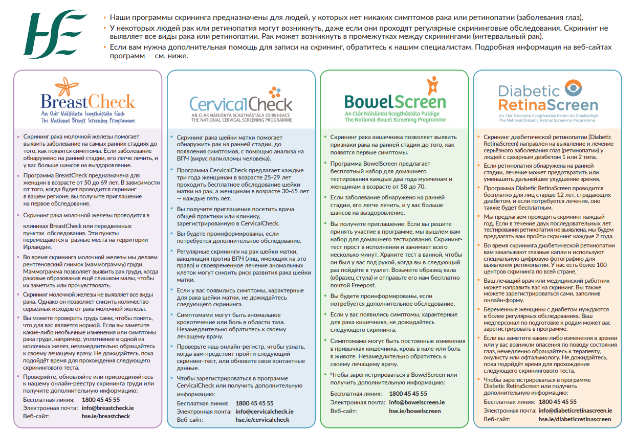 Information and advice about the four national screening services in Russian